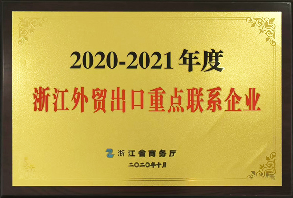 荣获“2020-2021年度浙江外贸出口重点联系企业”
