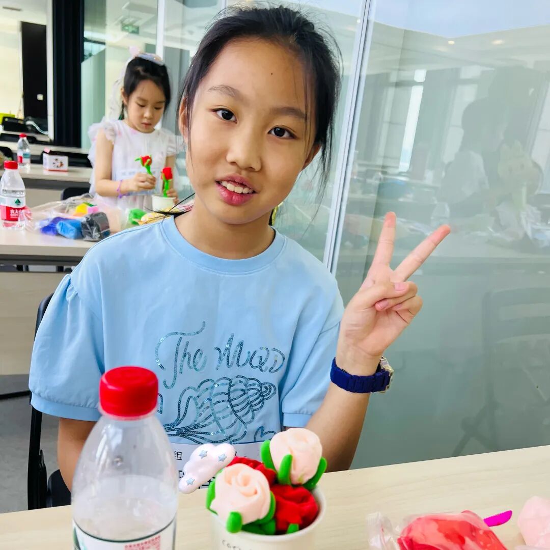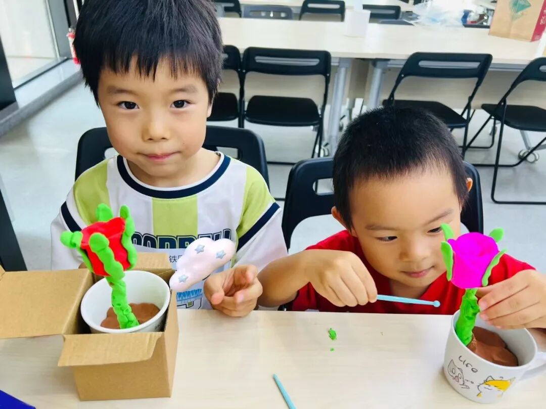 黏土课堂上,小朋友们积极与老师互动,跟随老师的讲解一步一步动手完成自己的黏土玫瑰花。在此过程中,许多小朋友都融入了自己的理解和创意,诞生了很多优秀的作品。